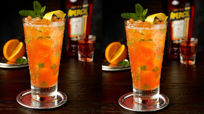 Aperol香甜酒、檸檬萊姆汁、薄荷葉、葡萄柚汁