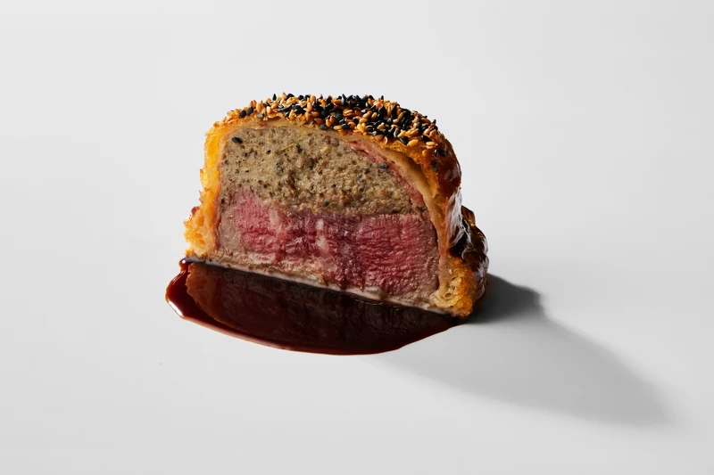 將澳洲和牛菲力、松露餡包裹在酥皮之中,取自「胡椒餅」為靈感,烤至表面金黃酥脆,最後淋上使用牛肉與紅波特酒一同燉煮而成的醬汁,除了濃郁的肉香還帶有微微酒香,搭配上酥脆的外皮、濕潤的內餡與扎實的牛肉,結合成完美的主菜。