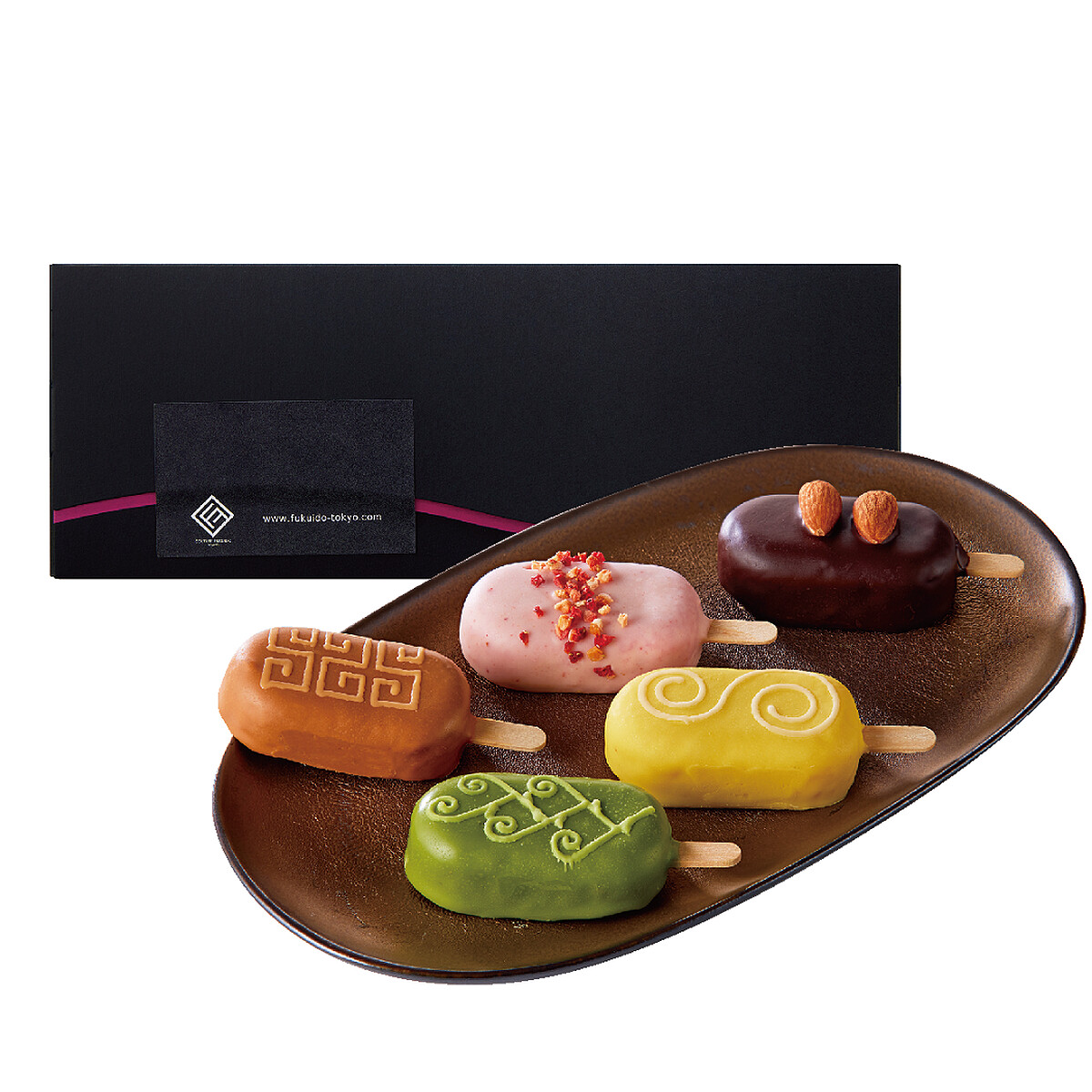 超過150年的日式點心老店「備前福井堂」,以可愛又獨特的造型口味收編許多遊客,這回與新光三越推出「5入迷你蛋糕禮盒」,內含5種顏色、融合西洋口味及日本和菓子技法的混搭蛋糕,同樣是首度來台的組合,售價780元。