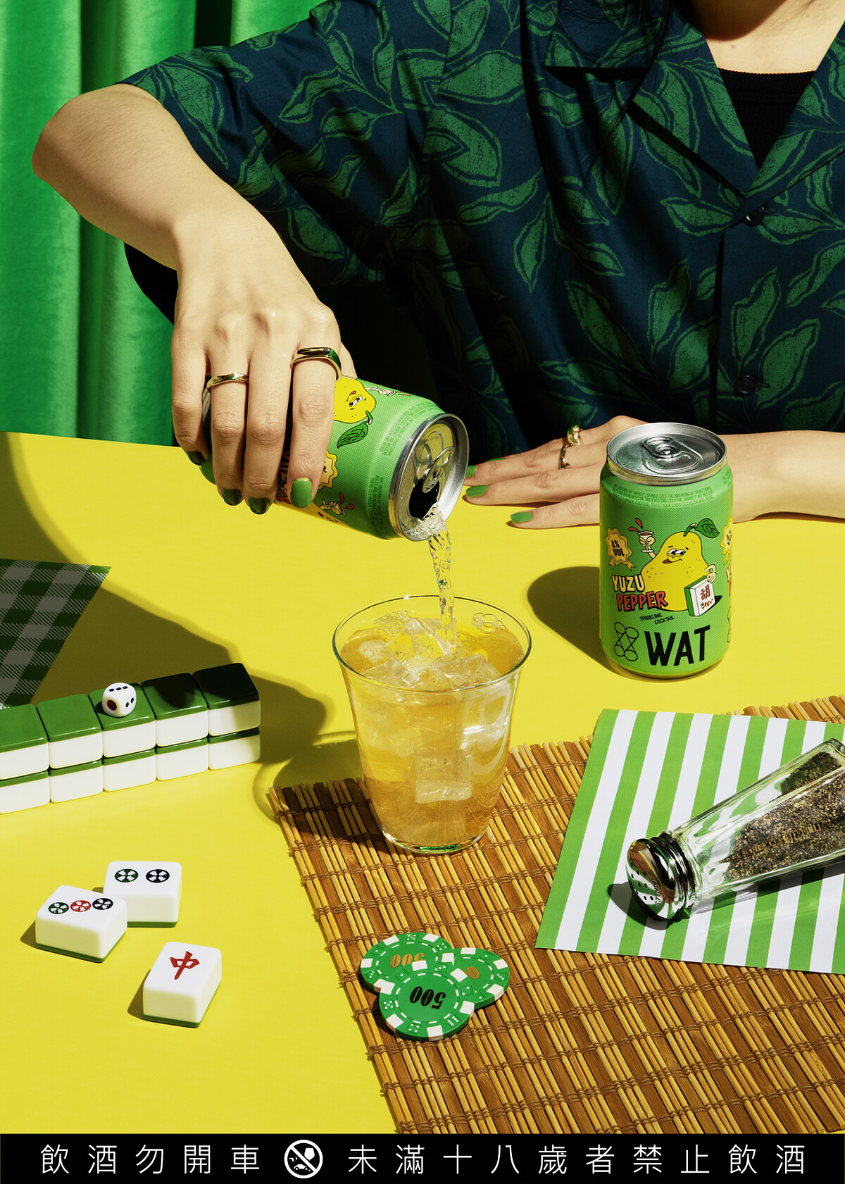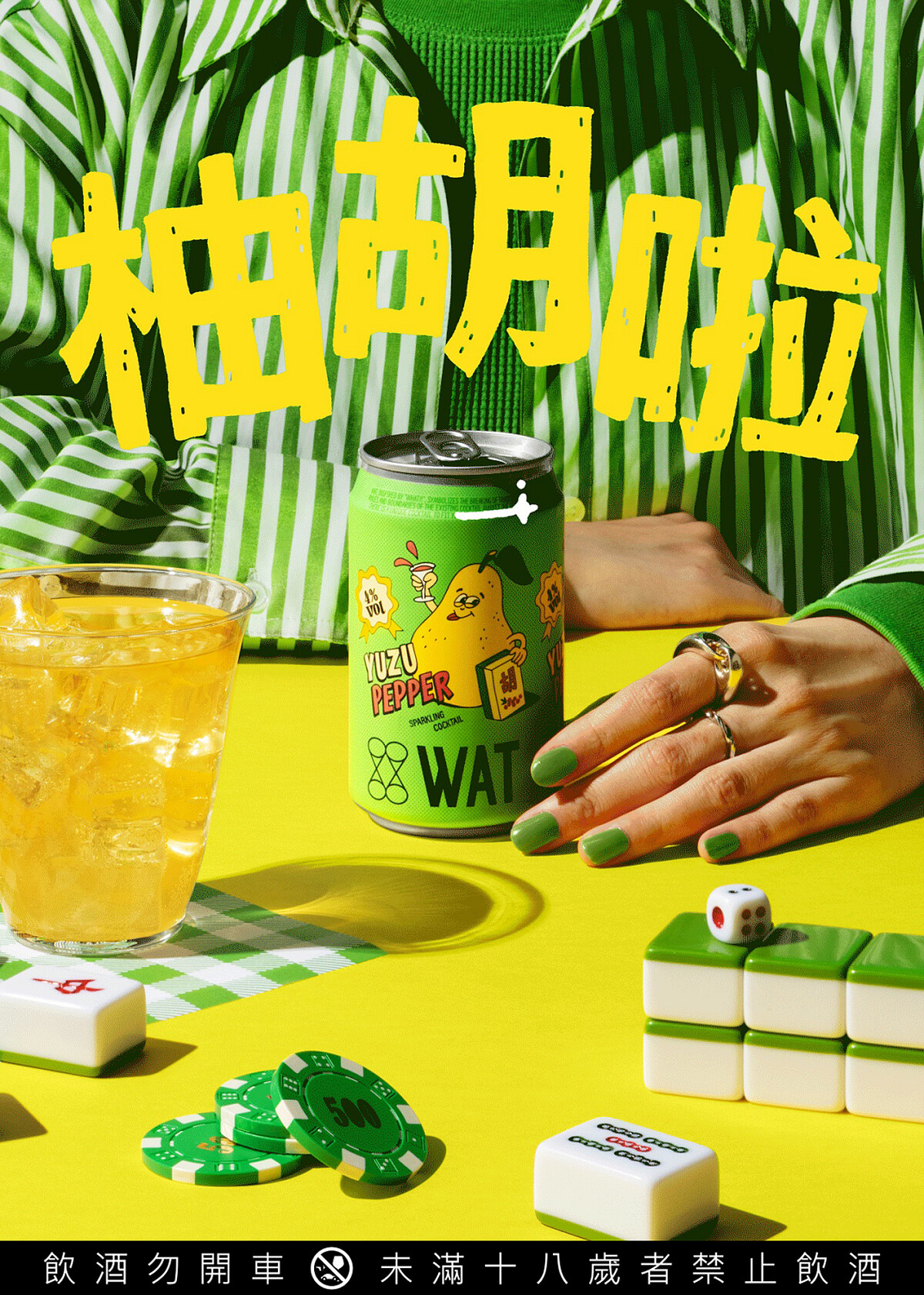 一向在設計上獨創一格的WAT,這次外包裝設計以俏皮可愛的柚子插圖,手上拿著台灣國粹-麻將,以諧音梗「柚胡了」,俏皮的名字加上微醺的酒精,好喝又好玩,讓它不僅僅是一杯普通的雞尾酒,也讓你的味蕾在其中盡情嬉戲。