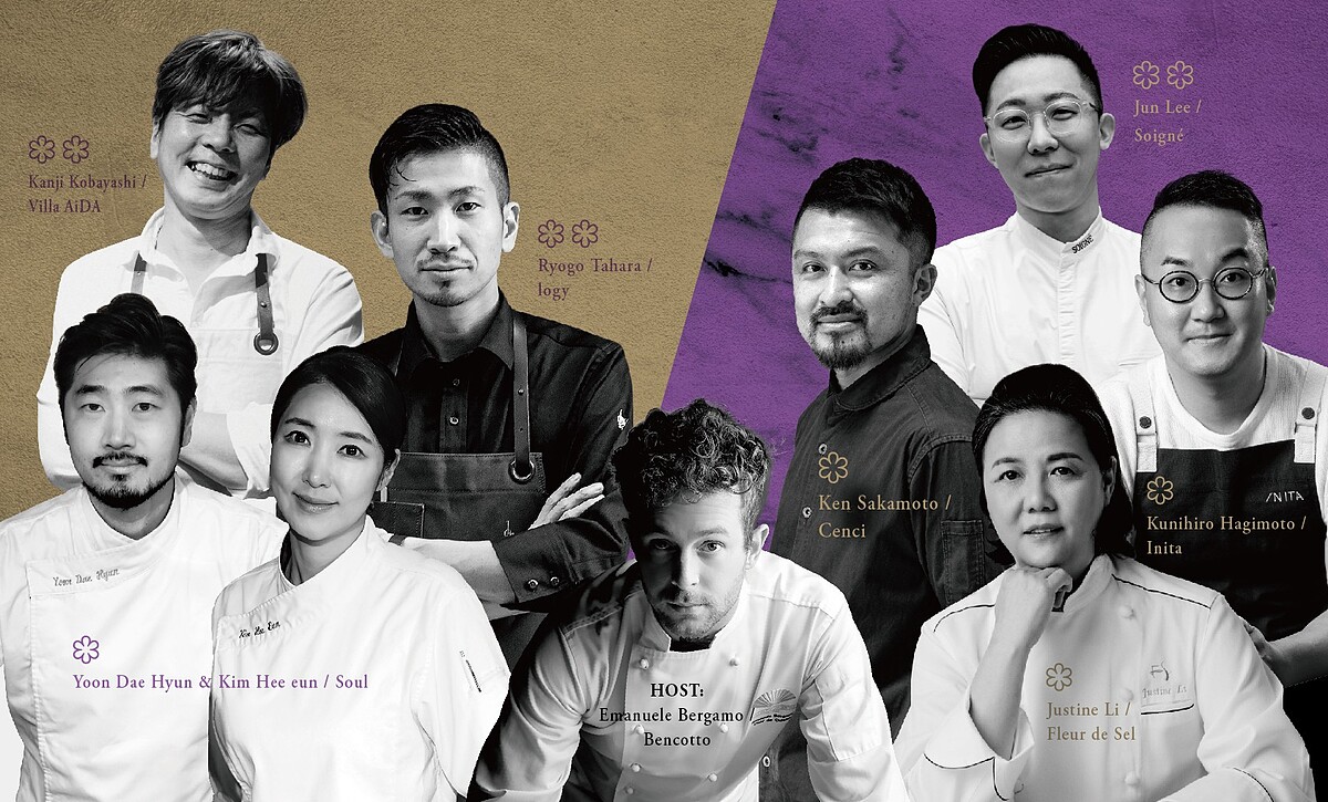 這次台北文華東方酒店X「ICSA 2024亞洲主廚高峰會」推出的「十手聯烹六道式極致餐酒晚宴」,5/17米其林星級主廚陣容包括「villa aida」主廚小林寬司(Kanji Kobayashi)、「logy」的主廚田原諒悟(Ryogo Tahara)、 韓國首爾米其林一星「SOUL」雙主廚尹大賢(Yoon Dae Hyun)及金姬銀(Kim Hee Eun)、以及「Bencotto」主廚艾曼紐.貝爾加莫(Emanuele Bergamo)等聯手獻藝。