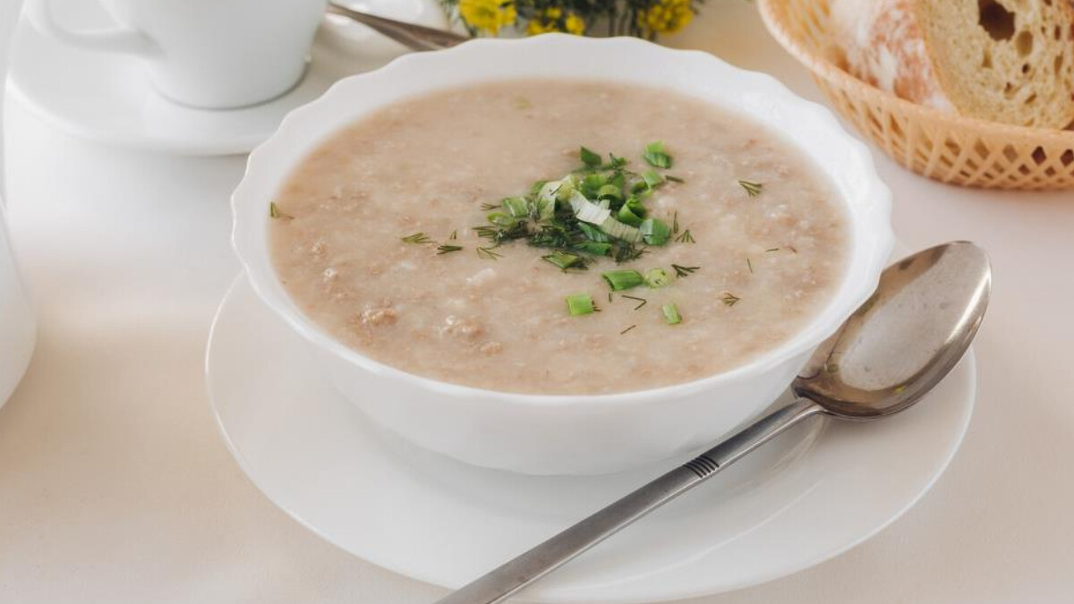 快點一起來大口吃肉、大口喝酒!這是蒙古家庭常見的解酒湯,首先在鍋中倒入高湯,待沸騰後加入切碎的羊肉熬煮。接著將靈魂食材麵粉,一點一點地撒入湯中,並用小火慢煨,直到湯呈現乳白色的濃稠粥狀,最後撒上青蔥。