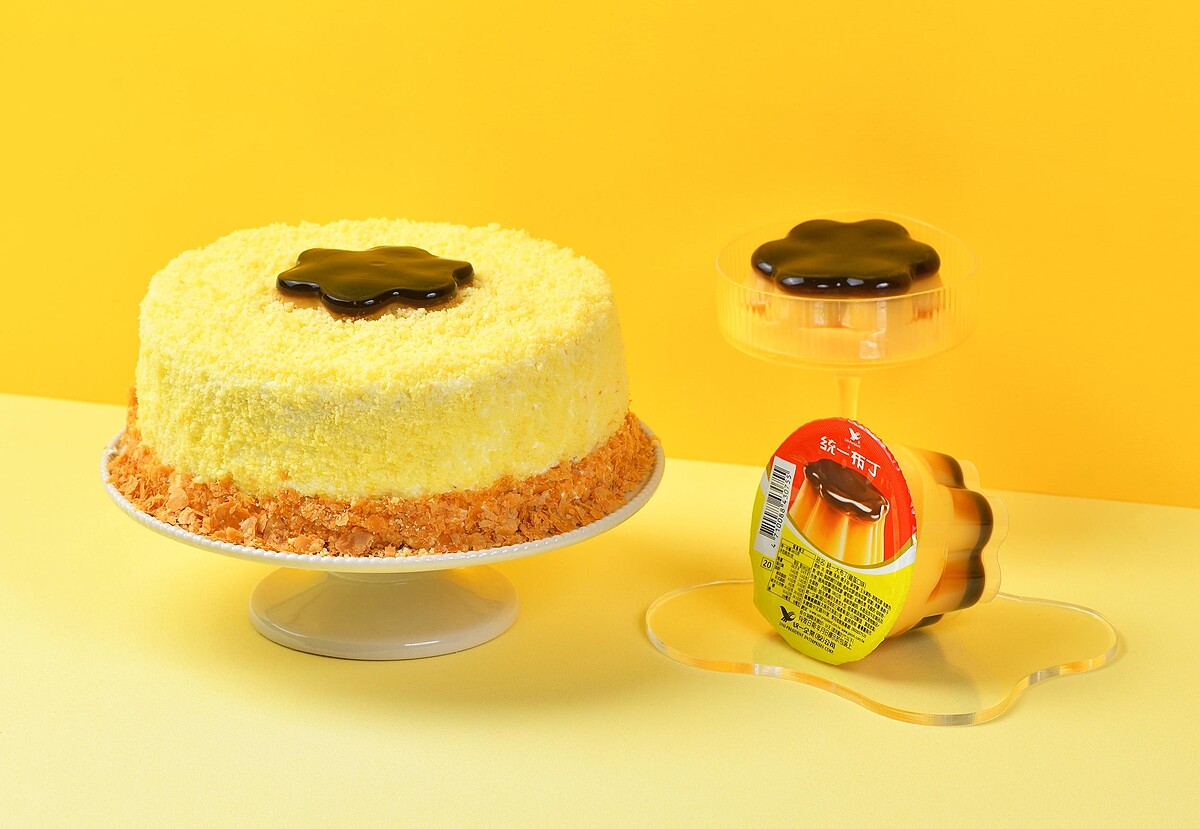 春上布丁蛋糕這一次將整顆Q彈的統一大布丁放入蓬鬆柔軟的蛋糕體裡面,一口咬下去不但可以吃到鬆軟的蛋糕,還有甜而不膩的滑順布丁,兩種願望一次就被大大滿足。金黃誘人的蛋糕表層灑上滿滿雪紡蛋糕屑,再加上宛如巨大化布丁的外型,讓眼睛和味蕾都能夠好好享受。