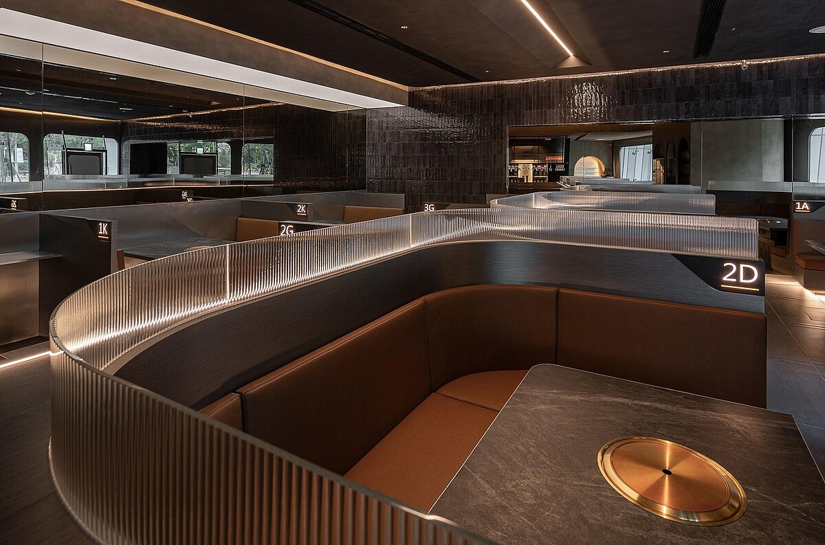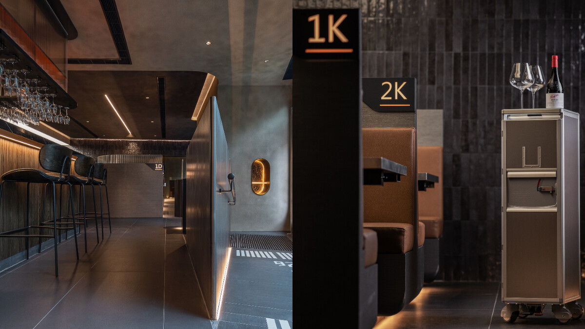 星宇航空 X 胡同燒肉 X VG TAIPEI共同推出的「星胡同」,以飛行航線為靈感,將燒肉與餐酒館巧妙融合,提供跨國界的主題套餐,還會模擬機上送餐的航空餐車服務, 讓你不用出國就能體驗搭飛機頭等艙的極致享受。餐廳的以色彩上以紅銅光暈象徵橘焱胡同集團,赭黃基調鋪排異域感,呈現出肌理粗獷的塗料,超級適合打卡拍照。