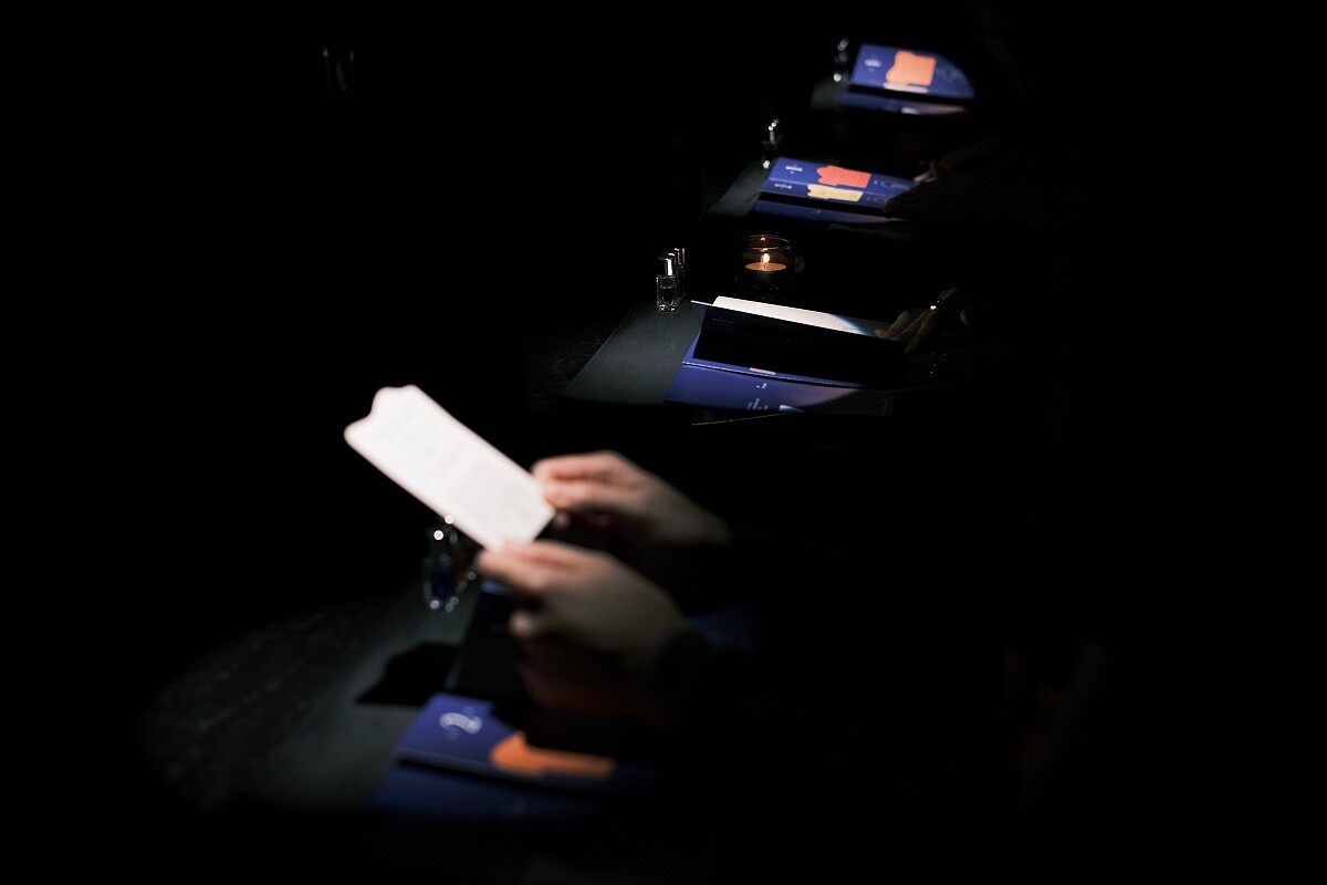 體驗將從推開「LIT TAIPEI」大門展開,所有六感將被全面喚醒,要先體驗季節茶迎賓,接著在點燈人的引導下進入暗黑的靈魂棲所。每個座位前都有一套專屬的論碼手冊和相應的脈輪花晶,隨著解碼的節奏,酒與食依次上桌。論碼分析個人特質與人生使命,花晶提供能量修護,兩者相輔相成,讓您在這裡探索生命的美好與驚喜。