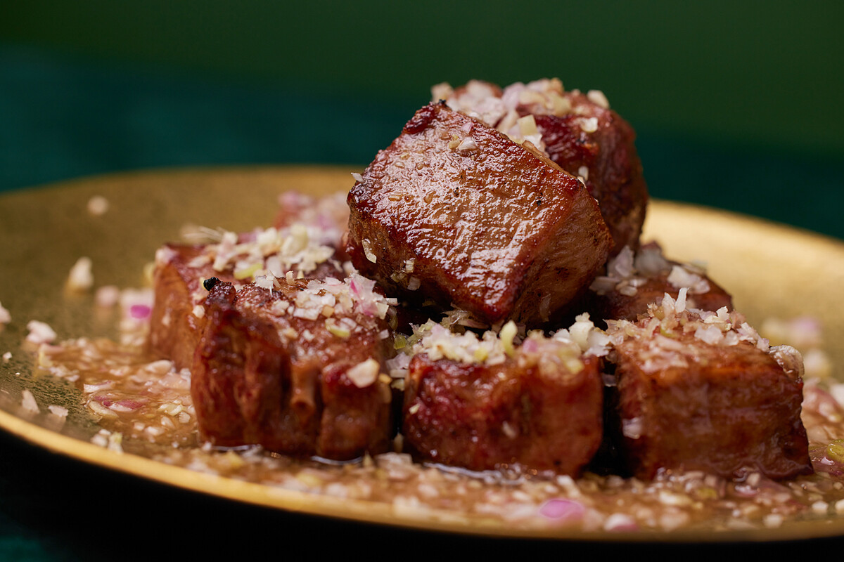 在每頭牛之中,只隱藏著一條獨一無二的牛舌,僅能取出兩份完美無瑕的牛舌芯,再搭配清新提神的「羅望子香茅紅蔥醬」,可以同時品嚐到牛舌豐富的油脂香以及醬料的酸甜風味,巧妙地將油膩的味道中和。