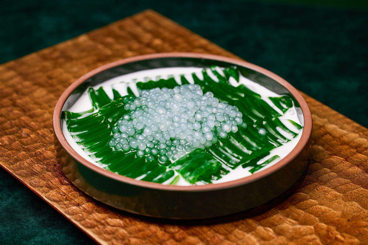 斑蘭葉原汁製作,加入椰漿及西米。微甜口味,清熱降火,作為麻辣雞煲刺激味覺旅程的完美終結。