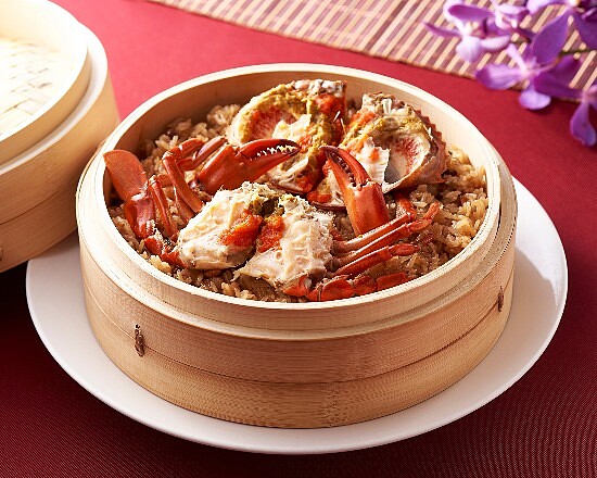 欣葉的紅蟳米糕將糯米和帶殼的生紅蟳一起蒸,糯米飯會完全吸收紅蟳的原汁原味。在蒸糯米時,加入香菇、豬肉、金鉤蝦、油蔥酥,搭配膏黃豐腴、蟹肉鮮甜的紅蟳,新鮮又美味。