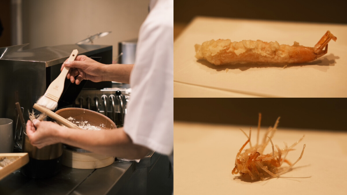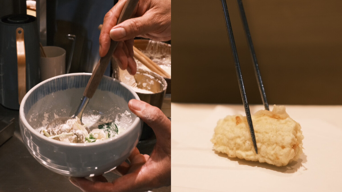 杉村社長憑藉正宗江戶前的傳統技藝,採用玉米沙拉油和麻油的獨特配方,使天婦羅清新不油膩,他嚴格控制油溫在170度至210度之間,以鎖住食材的鮮甜和口感,更堅持以薄麵衣襯托食材的原始風味,增添輕盈中的酥脆口感。杉村社長認為,一次接待太多位客人,也會影響到天婦羅從起鍋到入口的時間,因此堅持精緻化,這樣才能確保每道料理的品質。