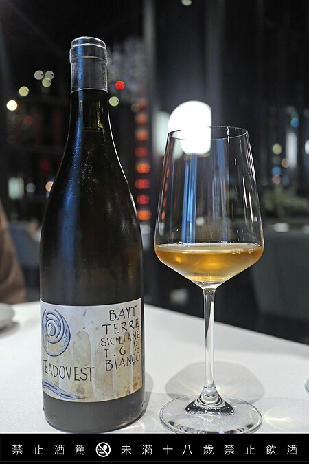 來自義大利西西里的白葡萄酒,由當地才有的古老原生葡萄品種 Grillo 釀製而成,有皮渣浸泡程序,但不像橘酒浸泡時間這麼長。而後在栗木桶、鋼桶中進行發酵。帶有水果與柑橘的香氣,口感平衡,風味餘韻悠長,適合搭配炙燒的海鮮料理。酒標很特別,是取自腓尼基文化的象形文字,字面的意義代表了巴勒神,有戰爭與豐饒之意,飲酒的同時能感受到當地獨特的文化。