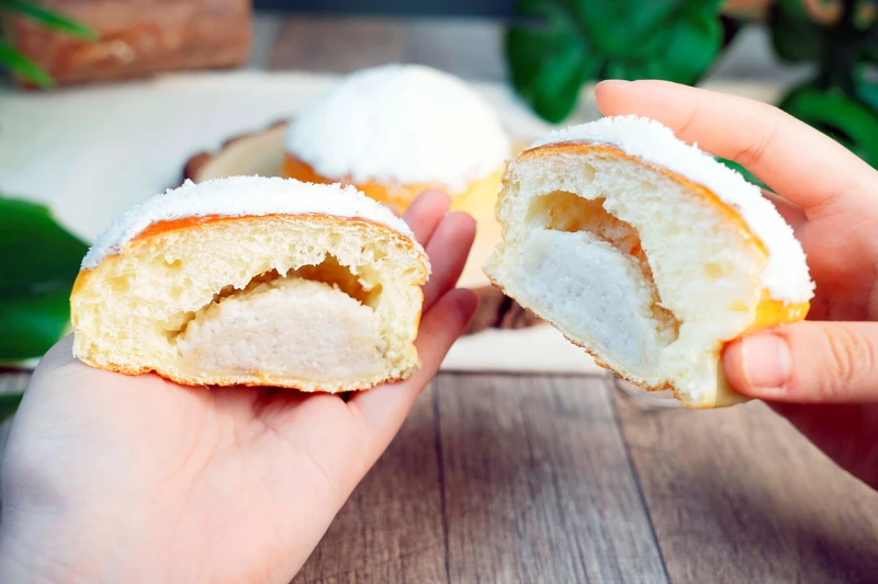使用蘭嶼水芋為食材,蒸熟後混入椰漿、椰粉做成內餡,並以魯邦30%麵團包裹,外層沾上椰子粉,入口濃濃的熱帶南洋風味。