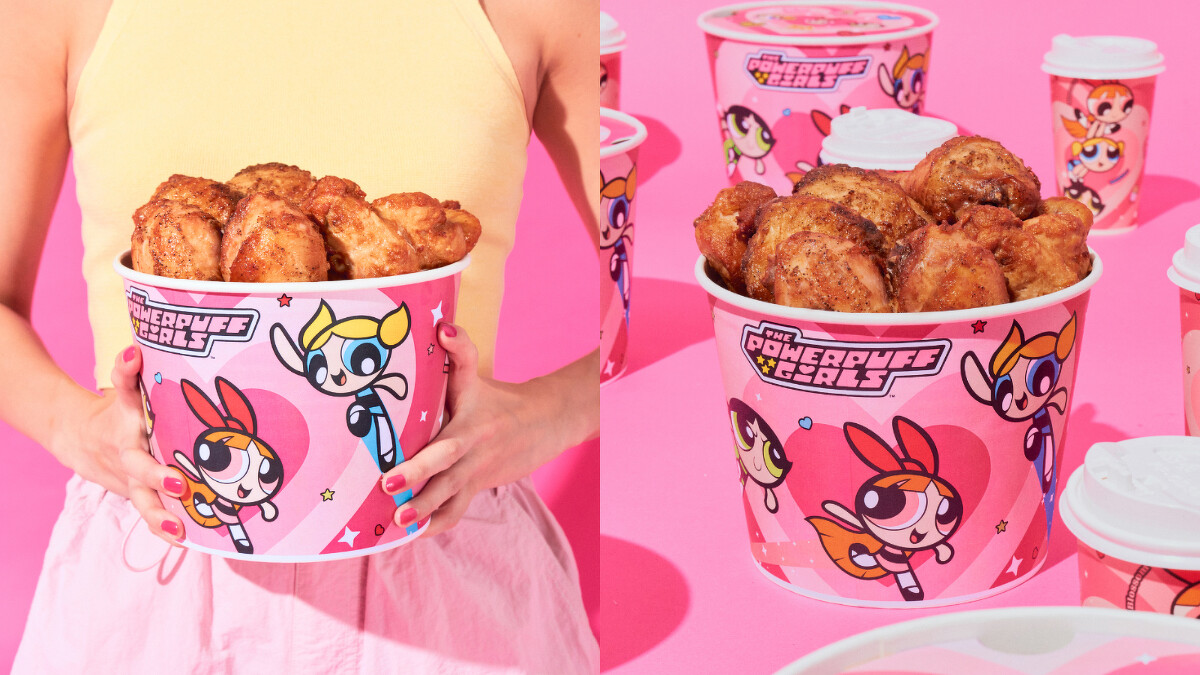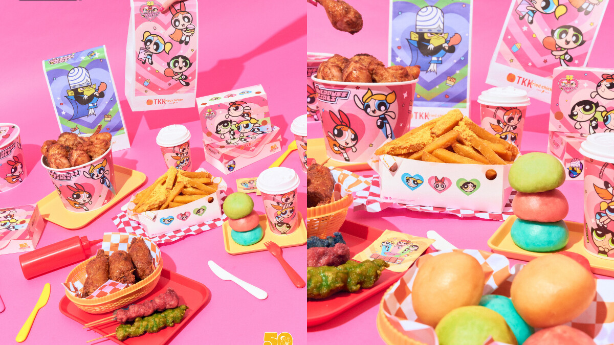 經典卡通《飛天小女警》中的花花、泡泡、毛毛,以及反派魔人啾啾、他一同躍上限定包裝,包括野餐盒、派對桶、飲料杯通通都能看見人氣角色以Y2K風格設計呈現,無論是打卡拍照還是拿來收藏都超級讚。