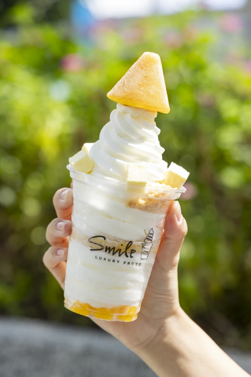 Smile Froyo採用「義大利國寶級Pregel優格冰淇淋基底」和「日本北海道四葉鮮乳」為主要原料,打造醇厚絲滑、清甜不膩,低糖、低脂的冰品,將義式冰淇淋的奶香綿密、優格的酸甜清爽的雙重口感巧妙融合。
