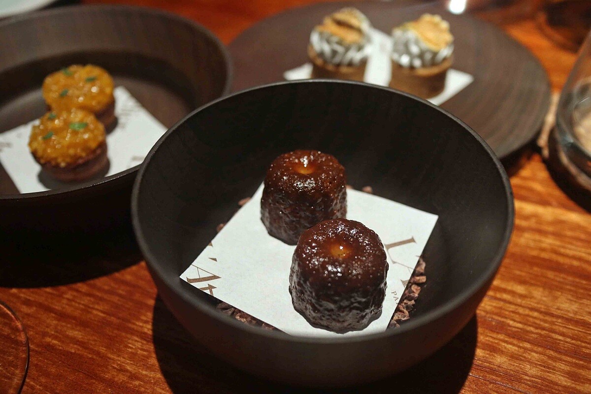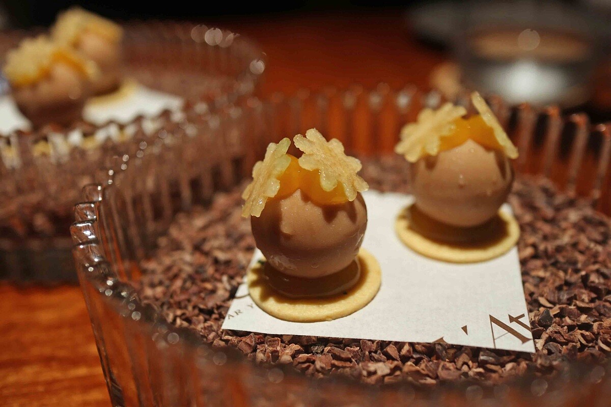 主體為肥肝,以馬德拉與波特酒醃製而成,底部以杏仁粉結合山當歸製成的餅乾,上方為百香果醬與新鮮哈密瓜,一口享用能感受到入口即化的美妙。