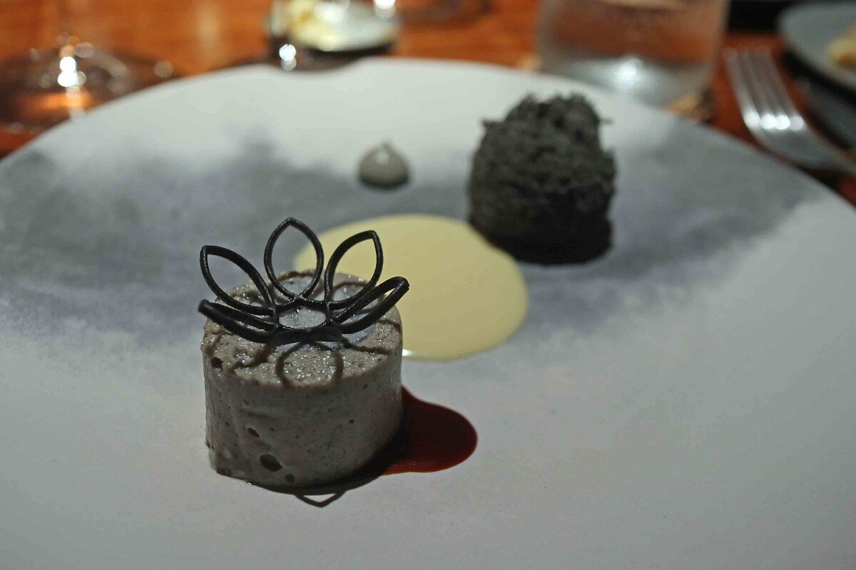 本季就以夏季食材發揮,菜色中有大量的夏季蔬菜,像是茄子、竹筍、番茄等等,甚至將台灣人喜愛的消暑食材—「仙草」也放進菜色中,與烏骨雞搭配成為主菜,打破了對法料食材的刻板印象,並以全新的姿態呈現。且,每道菜品間都緊扣平衡的風味與節奏,風格也轉向更為內斂成熟,主廚更試圖在菜色中增加不同層次的酸度,讓料理與料理之間多了節奏變化。
