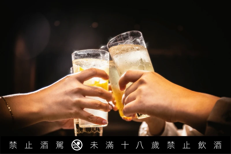 (由右到左)「角嗨 Highball」,經典必喝選項,以三得利威士忌角瓶 KAKUBIN 兌入氣泡水與檸檬,完美比例清涼爽喝!(NT220)