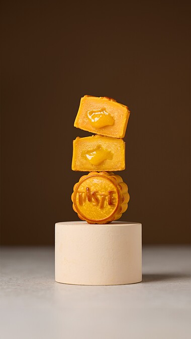 此次有四款風味月餅,「黃金干貝酥」將黃金干貝酥以頂級乾干貝烘烤拉絲,與鴨蛋黃、綠豆沙等揉合而成,入口先是起司香氣的酥皮,接續干貝餡料的濃郁口感。「翠綠蛋黃酥」,使用鐵觀音蛋黃酥外層以中式酥皮,呈現自然翠玉紋理,鹹蛋黃內餡伴隨鐵觀音茶香,甜而不膩。「香芝流心餅(芝麻)」,包入香濃芝麻流心,內餡香甜,芝麻香氣濃郁,令人回味無窮。「金芳流心餅(奶黃)」,製作金黃色滑順的流心內餡,與綿密外皮相互融合,包餡流心柔滑。