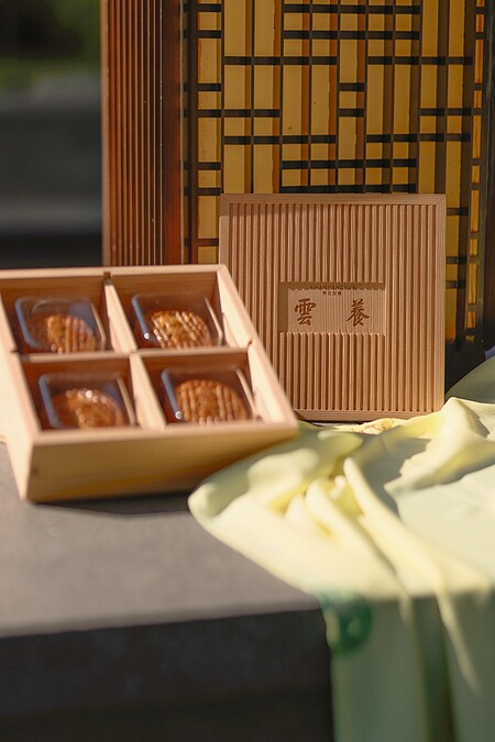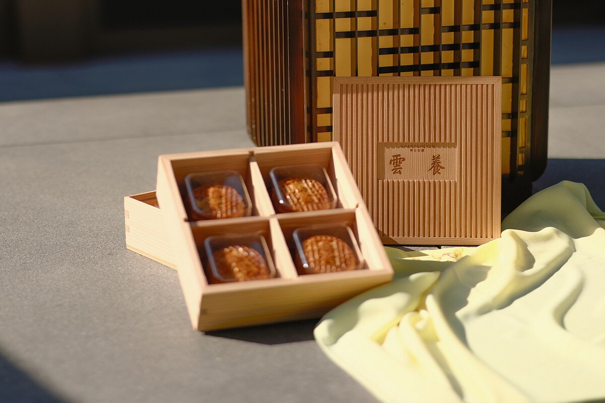 位於上海的「養雲安縵 Yangyun」今年再次推出中秋禮盒,延續傳統,使用秋田杉木盒和藝術包裹巾的搭配。秋田杉木的獨特紋理緊扣著養雲安縵建築風格,今年盒封蓋靈感來自東方傳統藝術,使用乾隆御筆題寫的「養雲」字樣在盒子中央,加上秋田杉木,擁有細膩的紋理和濃郁的木質香氣,悉心打磨後展現柔和觸感,自帶華貴氣質。