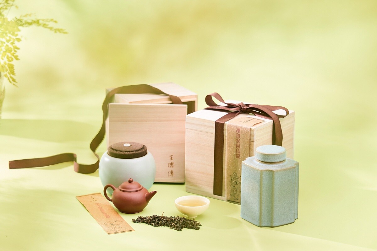 由王德傳茶莊推出,展示了百年工藝的傳承與創新。茶禮包含經典「安尚烏龍」系列,使用自然農法和中度烘焙技術,致敬傳統烏龍茶。另有新品「蜜香紅烏龍」,融合了蜜香與清甜滋味。禮盒外盒使用油畫布材質,內裝中秋限定「月光黃罐」,象徵對職人精神和工藝的珍藏。