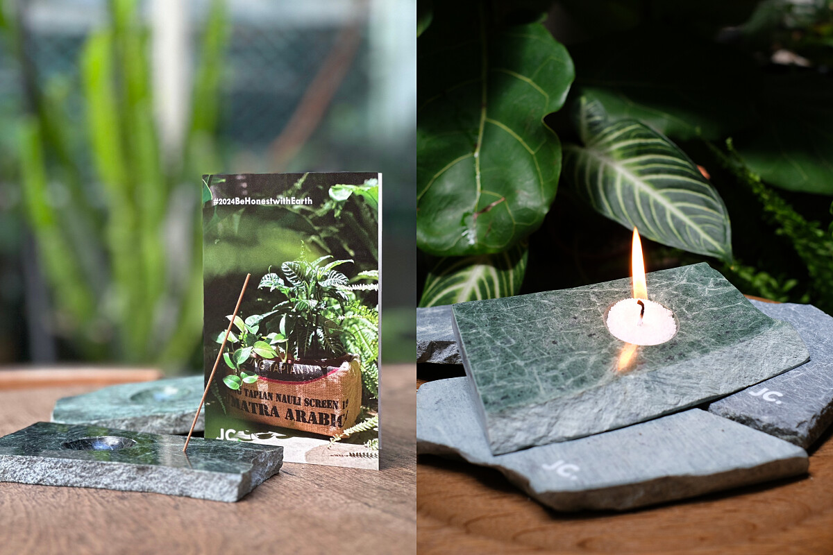 柏成設計團隊在今年花蓮地震後,巧妙運用受損的蛇紋石,創造出別具特色的香氛蠟燭座,為原本應被棄置的裂痕石材賦予新生。這款「Hygge 香氛蠟燭座」結合北歐慢活理念,透過簡約設計帶來舒適與溫暖。設計保留了石材的天然裂痕,以最少的改動呈現其自然之美,並傳遞正向能量,重新反思自然力量的衝擊。包裝採用二手咖啡麻布袋,兼具環保與實用性,體現資源再利用。此作品也向花蓮堅韌的精神致敬,彰顯自然中的美與藝術價值。(更多詳情請洽「柏成設計」FB/IG)