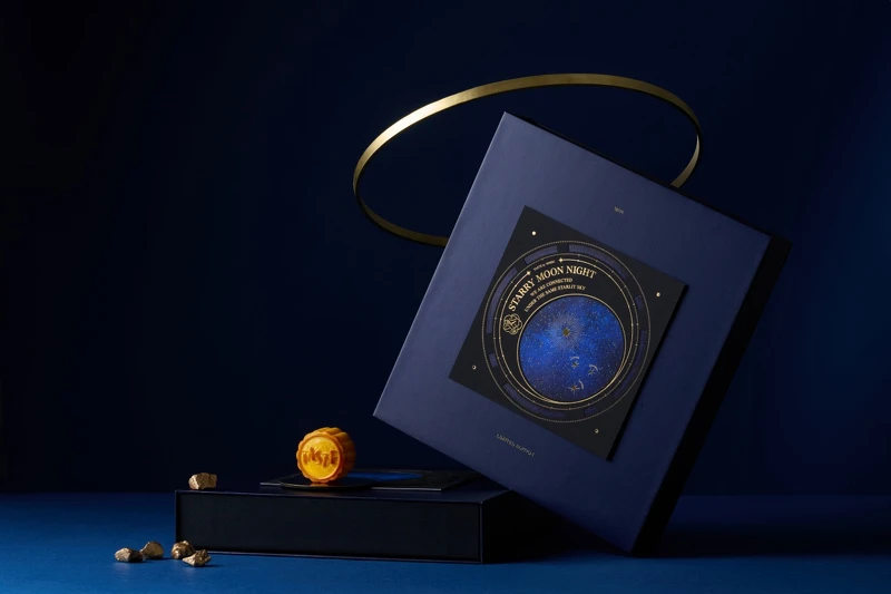 MMHG湘樂餐飲集團旗下電商品牌「TASTE by MMHG」今年再度與沖煮冠軍咖啡師王策的品牌「VWI by CHADWANG」合作,推出「月映星夜 Starry Moon Night」聯名禮盒。禮盒包裝十分精美且設計顛覆傳統,此次以星象盤為主題,在靛藍盒面上燙金星空圖案,展現精緻感。內層則延續星空主題,每個分裝盒用希臘神話圖騰描繪月餅口味。咖啡濾泡包則以黑金色包裝,象徵夜空與星斗,品嘗時彷如觀賞星象變化。