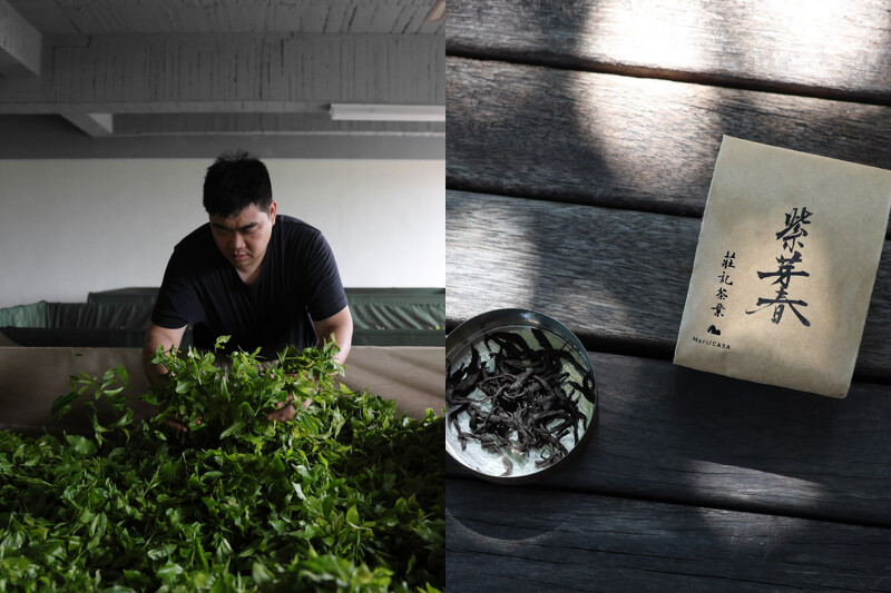 位於南投日月潭的莊記茶業,主人莊鎔璞在初夏烘製新鮮採摘的紫芽葉,這是秋季最珍貴的寶物。莊記自2012年開始製茶,逐步成為台灣冠軍茶的製作者。去年,森/CASA 被莊記的茶湯所打動,請他為「月器」製作最醇香的茶。莊鎔璞選用野放紫芽茶葉,沖出帶有林野芬芳的金黃茶香,並將茶香融入台茶十八號紅玉茶煎餅,薄荷與肉桂香氣交織,呈現春日山林的豐富層次。