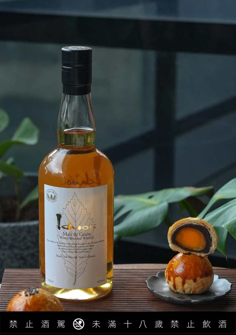 為迎接中秋佳節,「Ichiro's」與「古嗜甜點 KU. 」首次攜手推出威士忌蛋黃酥,包裝設計簡約大方。威士忌蛋黃酥在法國奶油的烏豆沙中,緩慢以低溫拌入「日本秩父白葉」威士忌,將日式威士忌的柔美纖細融入迷人餅香中。乳酪金月娘有別於傳統,除了使用香氣十足的鴨蛋黃及美國「NBA 起士」做為內餡外層,再包裹濃郁綠豆沙,綴上帕瑪森起司鹹香誘人。