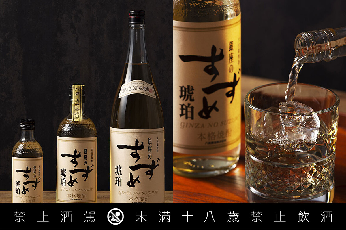 在東京銀座喝酒談天而忘了時間的大人,在日本被戲稱為「銀座的麻雀」,藉此印象誕生的「銀座のすずめ 琥珀」,將麥燒酎放入美國肯塔基州的波本桶內沈睡熟陳3年,酒液有著滑順口感與煙燻風味特質,肯定能讓威士忌迷墜入燒酎坑。