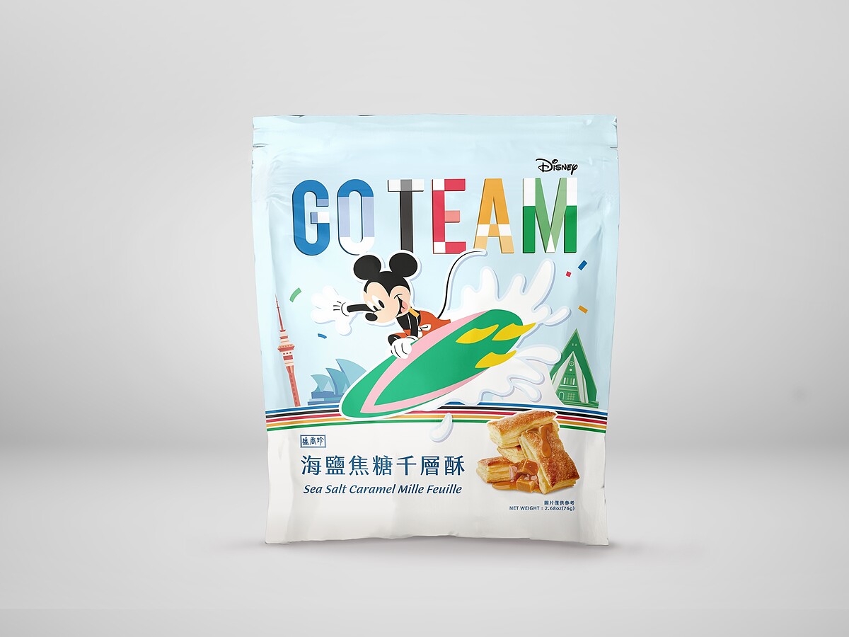 盛香珍經典人氣口味「海鹽焦糖千層酥」、「法式鹽之花奶油蝴蝶酥」、「花生巧克酥」、「靜岡抹茶薄燒」和「芋頭厚捲燒」揪迪士尼人氣角色一起來運動啦!「「米奇」站上衝浪板,衝過紐西蘭天空之塔與雪梨歌劇院;「唐老鴨」奮力踢出足球,飛越巴黎鐵塔、倫敦大笨鐘與羅馬競技場;「黛絲」賣力衝刺,跑過埃及人面獅身像;「高飛」穿上護具、踩上滑板,鼓足幹勁滑過上海東方明珠與日本富士山;「米妮」手抓岩塊、攀上高峰,俯視紐約自由女神像與智利摩艾石像。