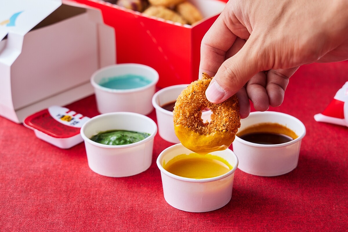 肯德基推出人氣點心「鱈魚圈圈」8/13~8/14買一送一優惠,優惠期間買一送一僅需59元,全台限量15,000份,每人每次限購買乙次、8/13~8/26買一盒原味蛋撻贈送一顆「宇治抹茶白玉蛋撻」優惠。