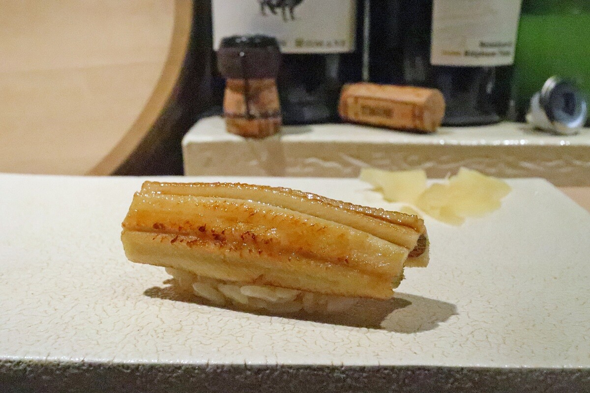 使用肉質肉質細緻的日本星鰻,並覆蓋竹葉一起燒烤,讓星鰻多一股清新的草本氣味,風味更為清爽,並用星鰻的骨頭熬製醬汁,讓味道串連一致。