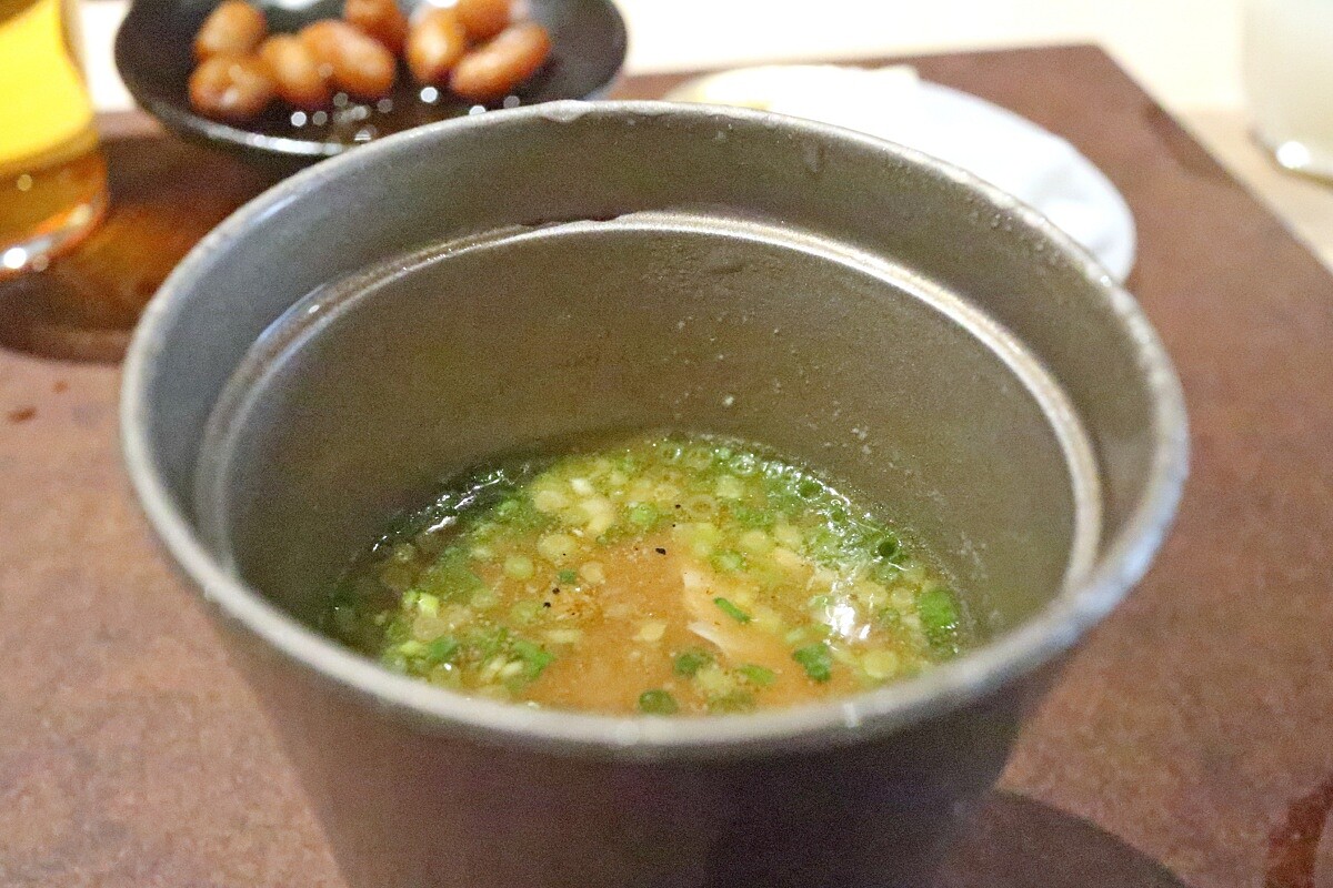 加入魚漿、山藥、雞蛋烘烤製作,呈現綿密濕潤的口感、鹹甜的風味。一旁則有以赤味噌製作的湯品,迷人的豆香味作為餐點完美的收尾。