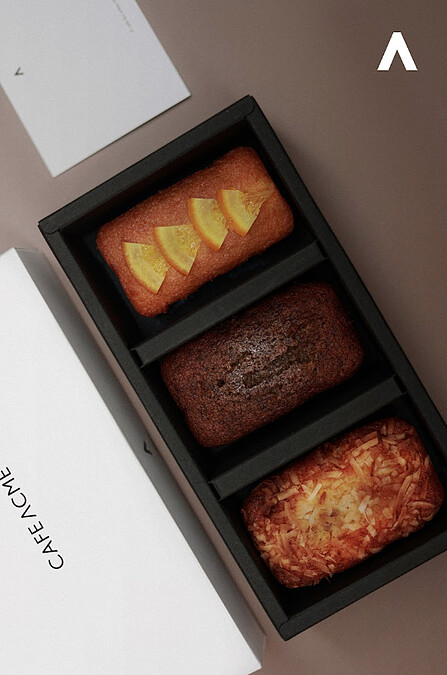 這款「CAFE ACME 24 中秋禮盒」內含3種口味磅蛋糕,包括「糖漬香橙磅蛋糕」、「酒香伯爵茶磅蛋糕 」以及「焦糖鳳梨椰香磅蛋糕」,其中「酒香伯爵茶磅蛋糕 」將醇厚的伯爵茶香與貝禮詩奶酒的微醺氣息完美結合,品嚐起來有新鮮蘋果的清甜,茶酒香的層次令人驚艷。