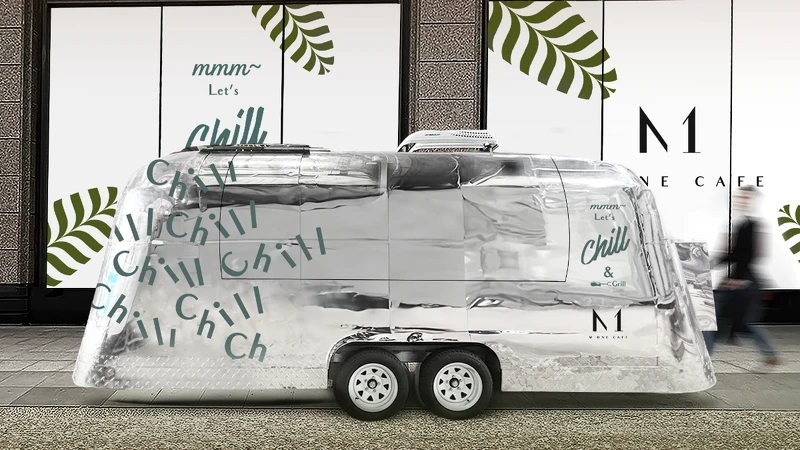 這次的餐車活動是以「mmm~ Let’s CHILL and Grill.」為核心,從美國發跡的Food Truck文化出發,精心訂製功能性與視覺兼具的品牌餐車,餐車的設計靈感來自美式電影中的經典場景,全車體以銀色鏡面打造,夜晚將化身閃耀焦點。