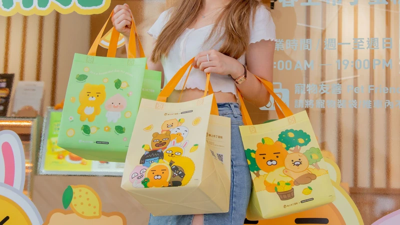 這次春上布丁蛋糕邀請KAKAO FRIENDS一起合作,推出聯名限量蛋糕袋與周邊系列商品,聯名蛋糕袋一共有3款設計,包括萊恩春植蛋糕袋、Happy Family蛋糕袋、萊恩桃子蛋糕袋,其中萊恩桃子蛋糕袋更是7-11獨家款,只要購買1顆聯名蛋糕,就可以免費獲得限量聯名提袋,只送不賣喔!