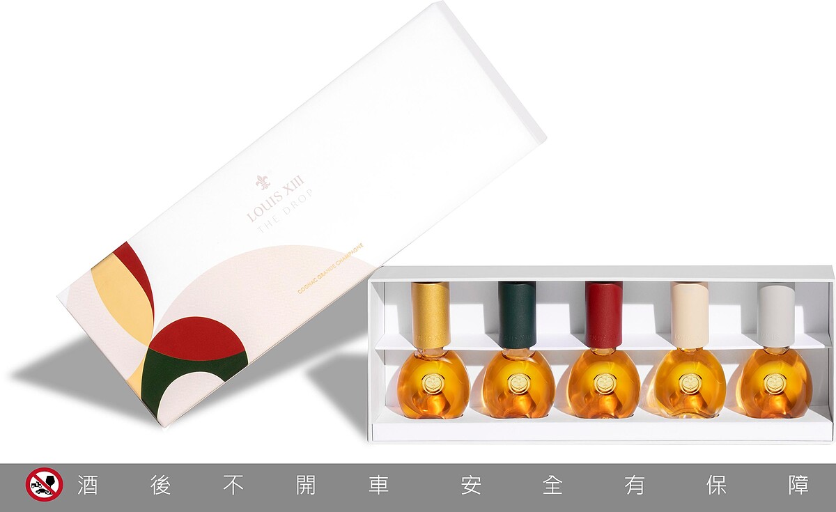 路易十三「THE DROP珍萃裝」,更邀請所有醉心於頂級生活品味人士,以嶄新的時尚角度去欣賞、珍藏獨一無二的路易十三。每一支「THE DROP珍萃裝」均含10毫升路易十三干邑,共有金、綠、紅、白、杏等五款鮮明優雅色彩的瓶蓋頭,分別代表「氣場非凡Loud」、「光芒四射Glow」、「大膽Bold」、「圓潤Smooth」、「耀眼清亮 Bright」等五種不同意象,並呼應東方五行哲學概念,展現路易十三深厚的藝術文化底蘊。更特別的是:絕無僅有的彩色皮套背帶,讓熱愛路易十三的你可隨心攜帶「THE DROP珍萃裝」,外出打高爾夫球、滑雪、登山…享受屬於自己的探險或悠然之旅,讓這支又潮又輕便的上好名酒,與你一同度過每個歡慶時刻!