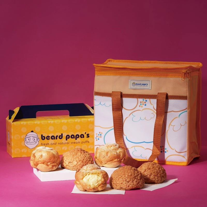 beard papa’s為了歡慶2024百貨週年慶,首次推出限時限量papa週年慶禮盒,內含日式香草泡芙3顆、菠蘿香草泡芙3顆及PAPA保冷袋1個,每日限定15組售完為止喔!