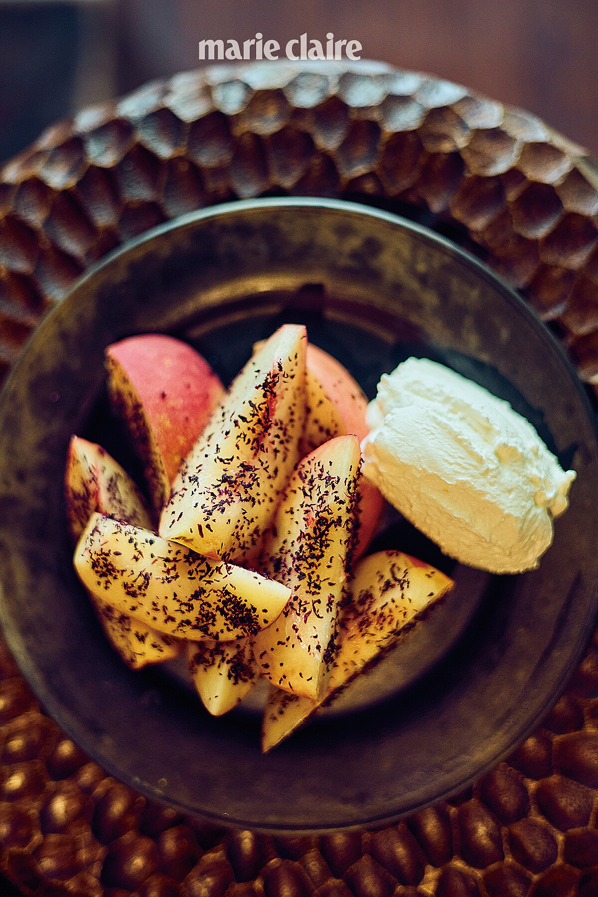 食材:新鮮水蜜桃1個 調味料:鮮奶油100克、細砂糖9克、日本紫蘇鹽少許