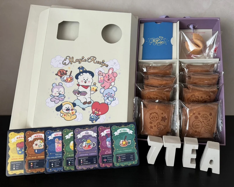 萌萌噠的「BT21 Magic Recipe魔法禮盒」非常適合送給有小朋友的家庭,七盞茶這回攜手超人氣的「宇宙明星BT21」,打造魔法般且特別的限量造型禮盒,內含BT21造型餅乾、Magic Recipe隨機卡牌、幸運餅乾,搭配手搖飲一起享用,每一口都是滿滿幸福。