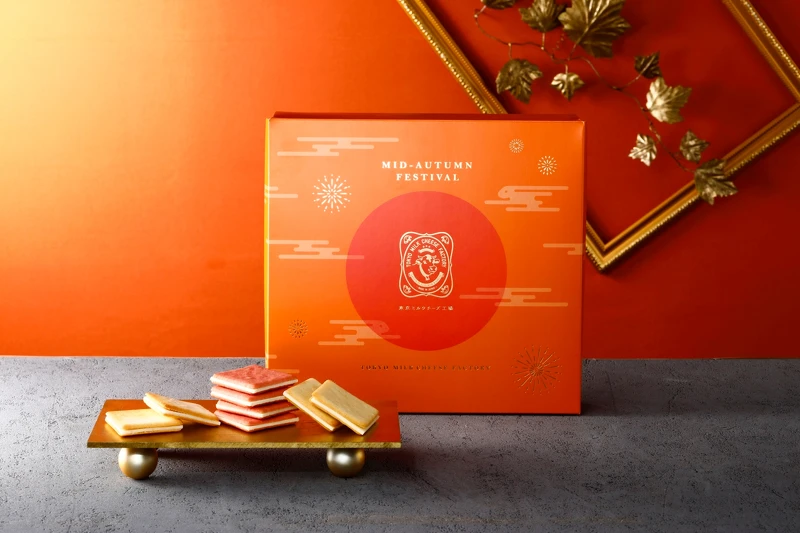 「Now on Cheese♪」集結2大人氣品項,推出雙口味組合款式「中秋限定綜合禮盒」,「煙燻起司&卡門貝爾起司夾心餅乾」酥脆的奶油脆餅包覆著由煙燻起司及卡門貝爾起司所製成白巧克力起司夾心內餡,煙燻香氣與濃郁的奶香交織融合,口感鹹香風味鮮明。「焦糖&古岡左拉起司夾心餅乾」焦糖風味的餅乾包覆著由古岡左拉起司製成白巧克力夾心內餡。
