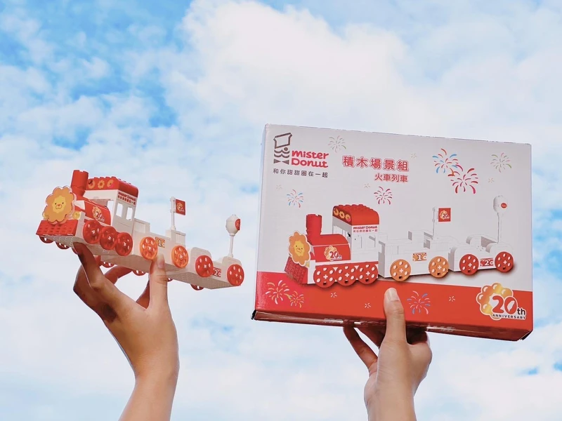 Mister Donut即日起至9月17日,推出任選10入甜甜圈可享有299元的甜甜價,再加碼持悠遊付/卡付款,加贈一顆蜜糖波堤,還有添加整顆布丁的「統一布丁煉乳冰沙」及「統一布丁焦糖伯爵鮮奶茶」兩款現作飲品也可享第二件20元的優惠。除此之外,還有Mister Donut代言人們打造的「20週年積木組─火車站」,還有由波堤獅帶領啟程的「20週年積木組─火車列車」可以購買收藏!