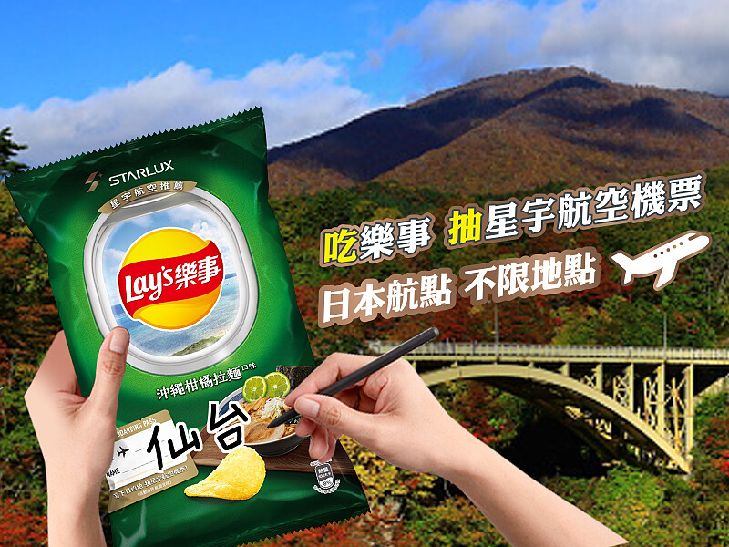 ●活動辦法:凡消費者購買樂事x星宇航空「味蕾直達日本」聯名限定新品(沖繩柑橘拉麵/關西大阪燒/宮城仙台和牛),於包裝上身登機證處寫下姓名&星宇航空任一日本航線,拍照上傳至樂事官方Facebook粉專活動貼文,Tag一位朋友並留言「我要搭星宇航空去__地點__玩」,週週抽出幸運粉絲送你飛日本!(名額有限,抽完為止)