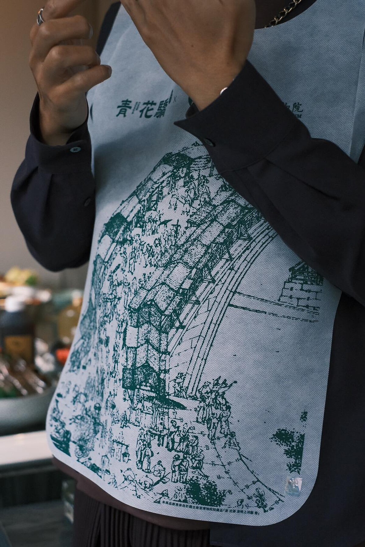 青花驕首度與國立故宮博物院聯名推出新品,以故宮之寶「翠玉白菜」、「肉形石」為靈感,打造宛如置身故宮的用餐氛圍,而且還以用餐圍兜為畫布,重現宋代經典名畫《清明上河圖》,讓人有種穿越回古代的錯覺,吃到一半都想要說聲「皇上吉祥了」~
