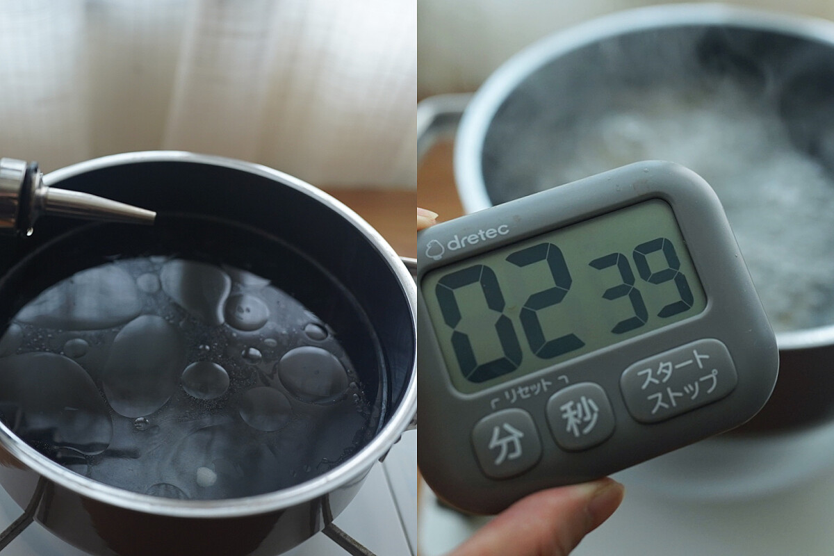 2.水滾後下麵條,計時三分鐘,期間稍微攪拌。