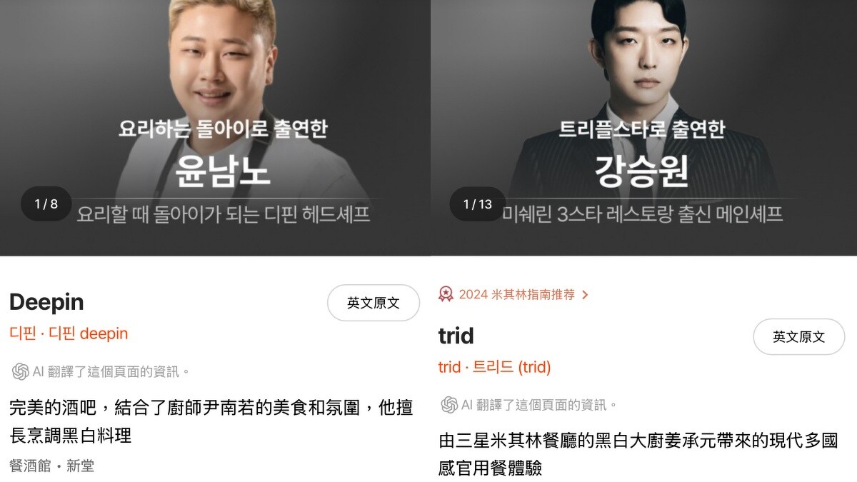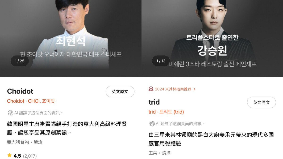 明星主廚餐廳資訊中文介面超好懂