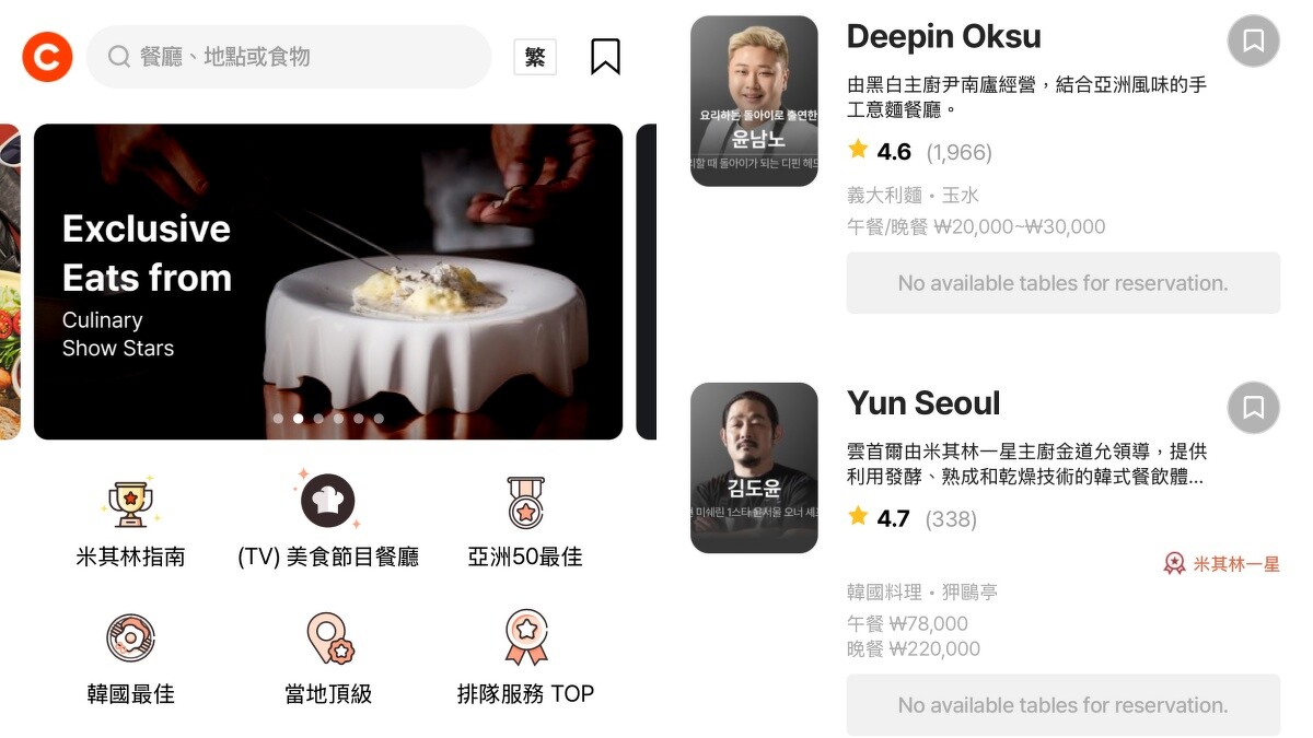 韓文版有上百間餐廳快訂位