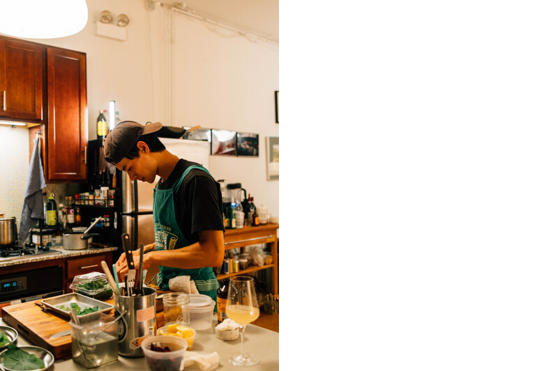 M.C.:你開始在社群平台發布自製料理影片的契機是什麼? L.H.:一開始是記錄做陶的影片也順便練習電影拍攝的技術,但某個夏天我離開陶藝工作室後,開始轉向記錄烹飪影片。我的父母在威斯康辛州經營一家餐廳,而食物跟料理對於來自台灣的我們來說就是生活的一部分,我希望透過練習料理更理解自己的文化甚至是其他的文化,所以才開始拍攝料理的影片。
