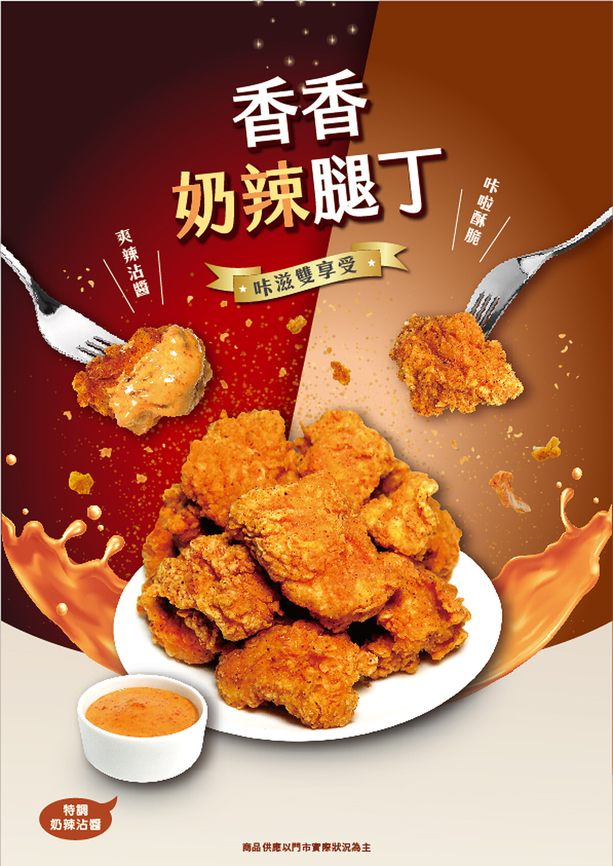 「香香奶辣腿丁」以鮮嫩多汁的雞腿肉為主角,搭配特調的奶辣醬料,除了肉質鮮嫩多汁外,搭配帶有著辣味香氣的醬料更是完美match,在「辣」與「奶」2種風味中取得平衡,既讓辣味能夠刺激味蕾,又讓奶香能夠柔和地包覆住味蕾。