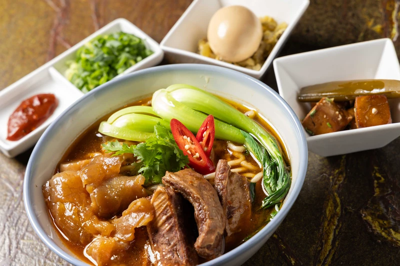 想來趟味蕾的世界巡遊,必點菜色肯定是飯店招牌「君品牛肉麵」,選用肉與油脂比例恰好的牛肋條,搭配精心熬煮的紅湯與手工細拉麵,秋季最適合熱熱一大碗大快朵頤。