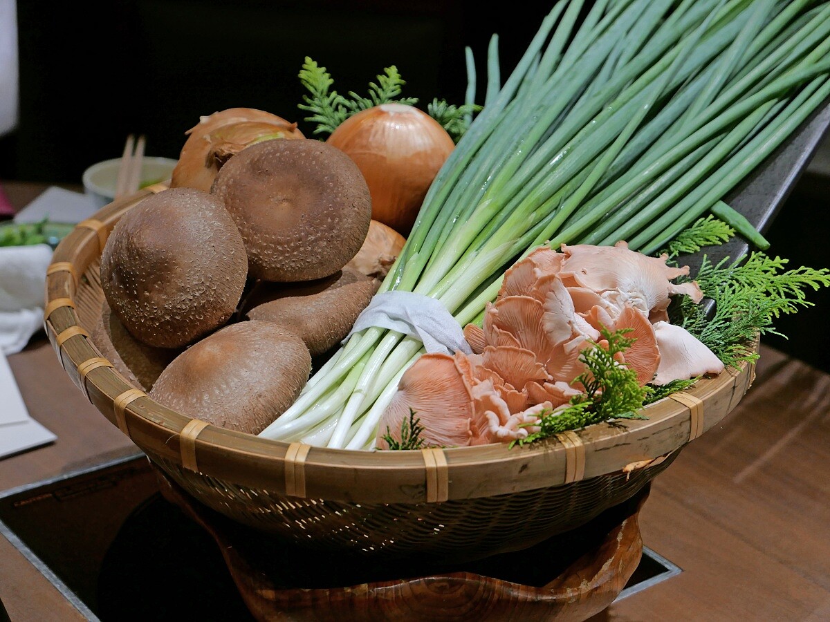 醬汁則是搭配「柿安」創立以來就有的百年壽喜燒醬汁,配菜也悉心講究,料理長從日本帶來兵庫縣淡路職人所種植擁有16度甜度的「完熟洋蔥」、田村農園種植的「福王香菇」、京都淀產的「九條蔥」。